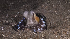 Royalty Free Underwater Video Stock Footage of Coconut octopus (Amphioctopus marginatus) changing color in slow motion.