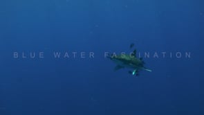 Royalty Free Underwater Video Stock Footage of an oceanic whitetip reef shark (Carcharhinus longimanus) passing close by in slow motion in The Red Sea accompanied by pilot fish.
